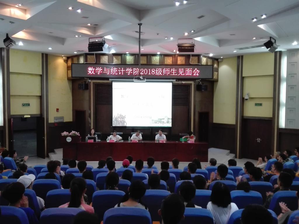 通讯员 张亿瑞 陆文科)9月9日晚6点半,数统学院在行政楼一楼报告厅举行2018级师生见面会。院党委书记刘浩、院长王成勇、副院长丁凌、院长助理张旻嵩,全体中层干部、全体辅导员、全体新生班主任和2018级新生参加会议。党委副书记姚威主持会议。