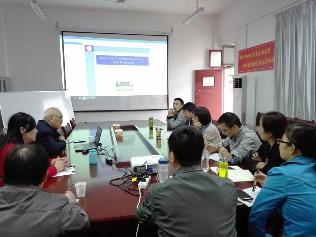 蔡俊亮教授首先从介绍边为1和2的图的所有画法,来引入计数问题,然后指出在同构意义下,画出的图有些是重复的,接着又指出这种计数的缺点,从而定义了带根地图的计数方法。蔡俊亮教授还详细介绍了如何利用参数化的方法,间接地得到不可分离的带根近三正则平面地图依根面次和边数为参数的计数结果,该结果弥补了对这类地图计数的一个缺陷。最后,蔡俊亮教授还就图论的几个热门研究方向做了简要地介绍。