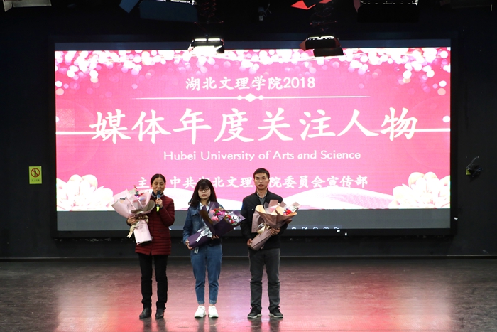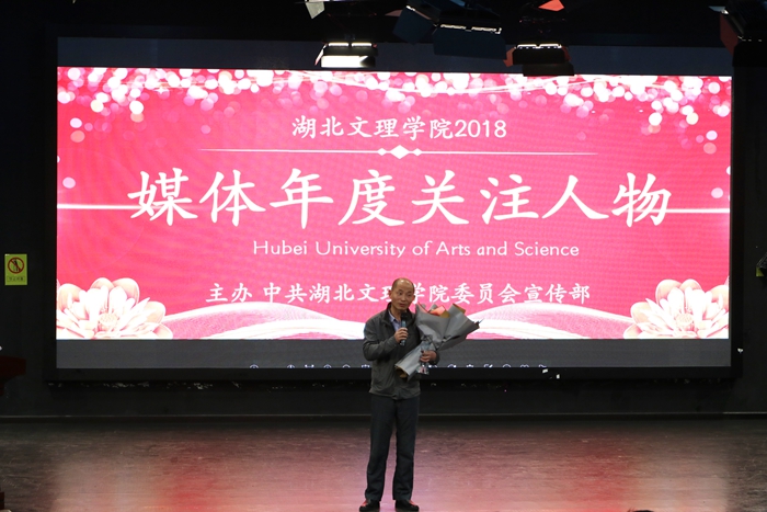 “格桑花”支教团队、后勤员工李后先、食化学院博士李玉奇,数统学院“经典一百”读书会、教育学院教授彭文晓和机械工程学院教授李小昱王为教授等团队和个人荣获“2018年媒体关注年度人物”称号。晚会现场,在场师生观看了这些“平凡却又不平凡”人物的短片,一睹他们的奋斗风采:“格桑花”支教团队攻坚克难赴藏援教、传递知识、播撒爱心,将青春挥洒在雪域高原上;李后先日复一日地打扫教学楼的卫生、坚持每晚检查水电、提醒学习到深夜的学生;“扶贫博士”李玉奇深入扶贫点、为百姓脱贫致富出谋划策;“经典一百读书会”团队弘扬优秀传统文化、开展各种经典读书活动;“三好”教授彭文晓幽默风趣,用自己独特的教学模式授课、点燃课堂氛围,热爱运动,引导学生积极参与体育锻炼;李小昱、王为兢兢业业,退休后担起科研重担,带领学生团队斩获第八届全国大学生机械创新设计大赛两项一等奖,其中“双幅盘式抗风立体停车库”获“中国好设计”奖。