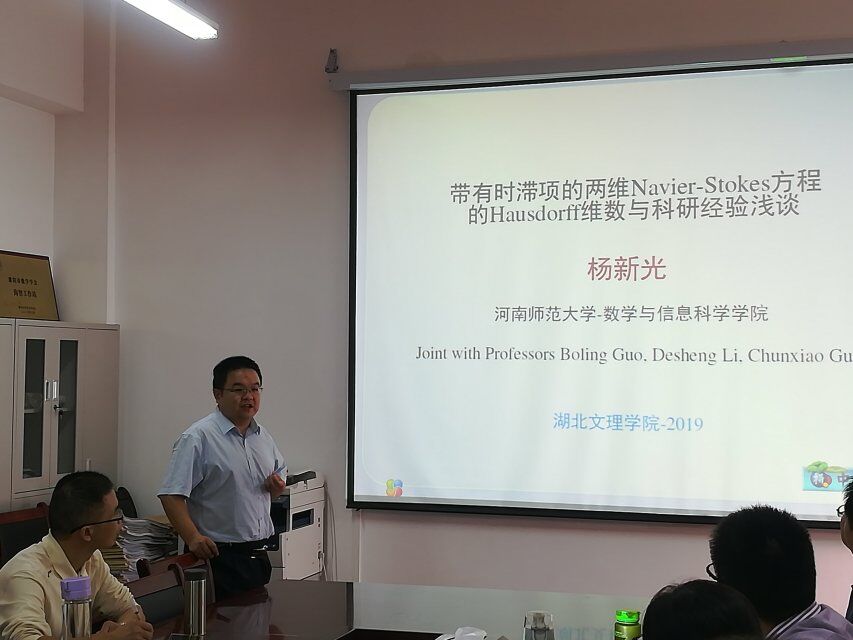 邀请,2019年9月20日下午,河南师范大学杨新光博士做客隆中讲坛,在N6-312会议室为数统学院师生作了一场精彩的报告。报告会由副院长丁凌教授主持。
