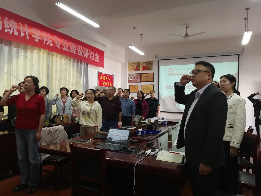 主题党日按照“回顾初心、党性教育、民主议事、实践锻炼”四个板块要求进行,全体党员首先在学院会议室集中进行奏唱国歌、重温入党誓词两项议程,由数学与应用数学系教师党支部书记杨艳主持、信息与计算科学系教师党支部书记陶茂虎领誓。