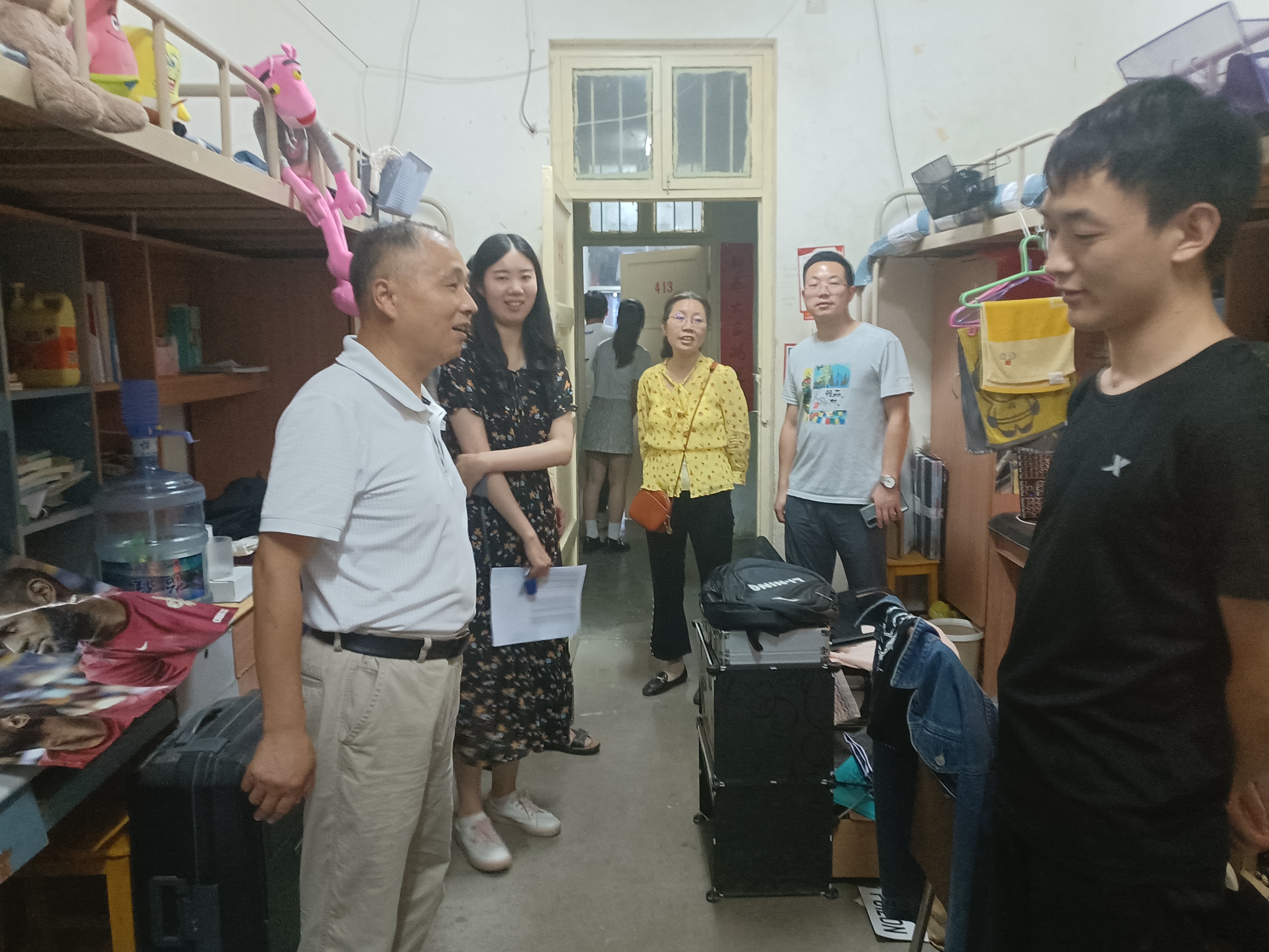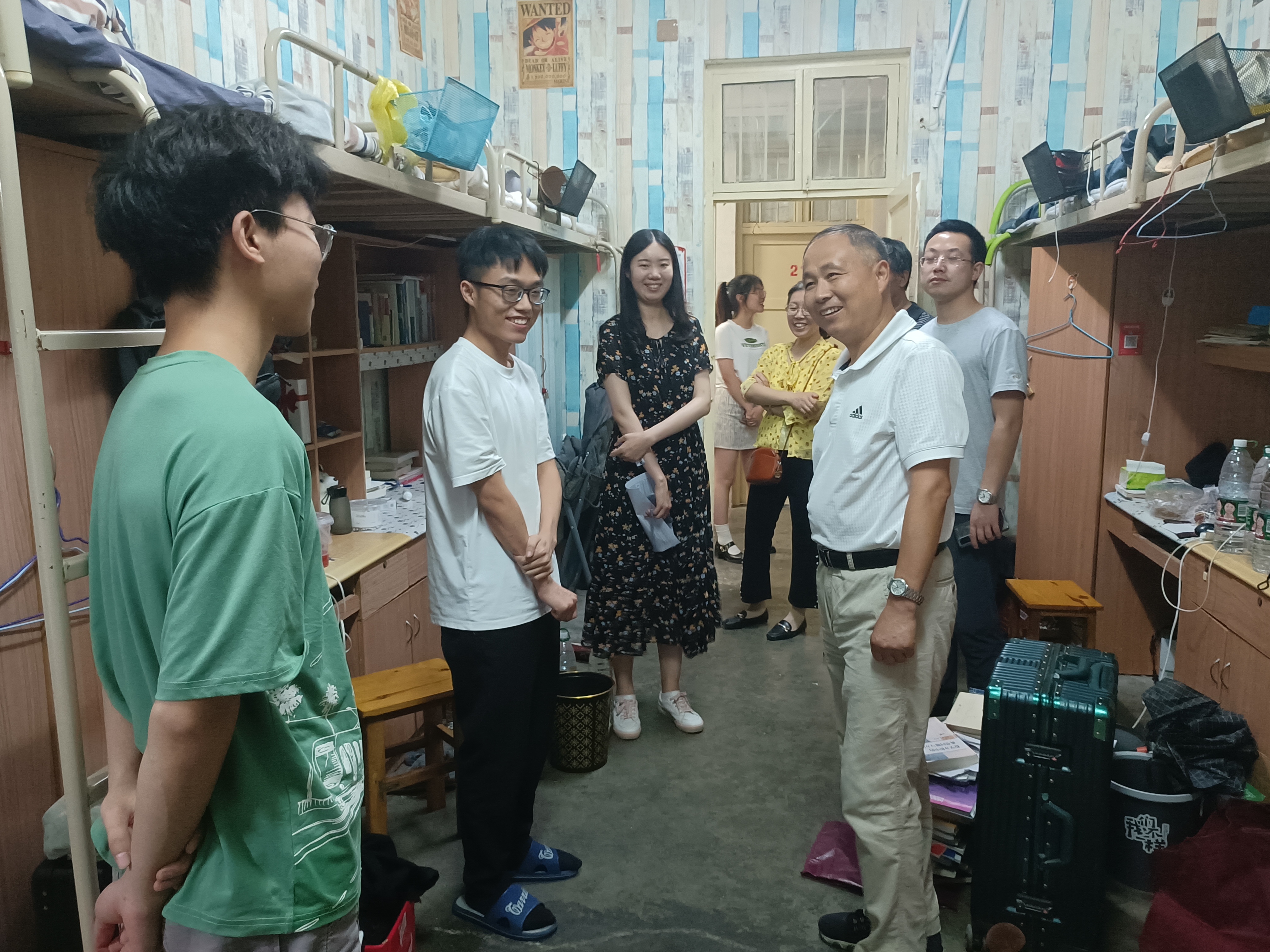 深入开展下基层察民情解民忧暖民心实践活动,6月7日晚上七点半,学院党委书记刘浩带领学院系办负责同志、毕业生辅导员走访毕业生宿舍,看望2022届毕业生。