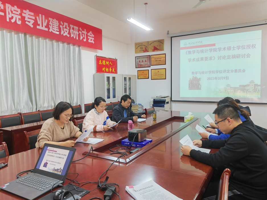 副院长丁凌宣读了《 探花av 数学学术硕士学位授予学术成果要求》相关内容并阐述了制定原则,学院学位评定分委员们进行讨论、交流和修改。