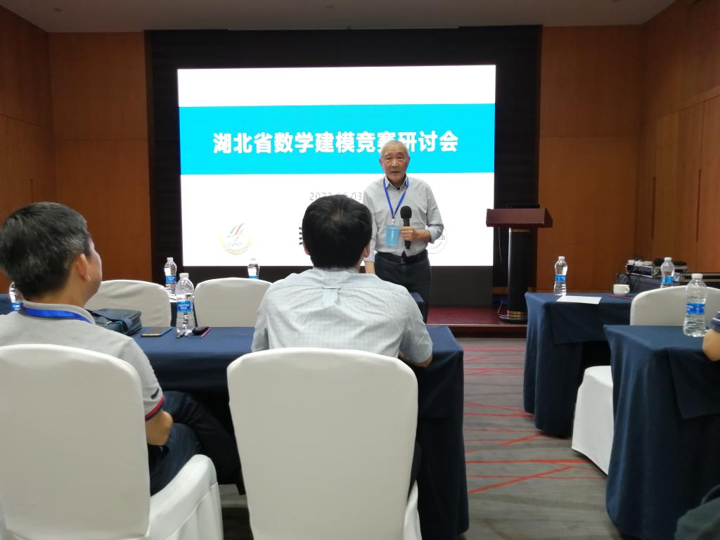 会上,湖北省工业与应用数学学会理事长、武汉大学教授杨志坚介绍了学会在推进数学建模竞赛方面所做的工作,数学建模资深专家武汉大学教授费浦生回顾了全国大学生数学建模竞赛和湖北赛区从起源到逐步壮大的发展历程。
