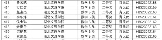 (数学统计学院 通讯员 肖氏武)第十二届(2023年)湖北省大学生数学竞赛成绩近日揭晓。我校数学与应用数学专业张跃进等三位同学获数学专业组省一等奖;数学与应用数学专业费云瑞等八位同学获数学专业组省二等奖。物理学专业吴天笑等八位同学获非数学类省一等奖;电子信息专业祁明宇等十一位同学获非数学类省二等奖。