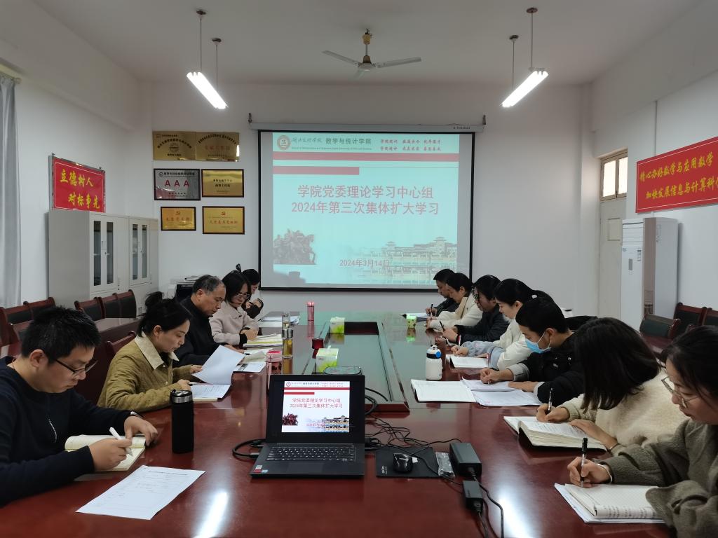举行党委理论学习中心组2024年第三次集体扩大学习。学院领导、党委委员、党支部书记、各办主任、团委书记、辅导员参加会议。会议由学院党委书记刘浩主持。