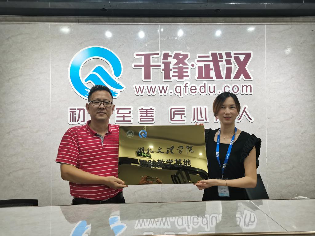 仪式上,袁红星、武汉千锋互联科技有限公司经理刘倩代表双方共同为实践教学基地授牌。丁凌、武汉造风者教育科技有限公司总经理蔡丽芳代表双方共同为实践教学基地授牌。