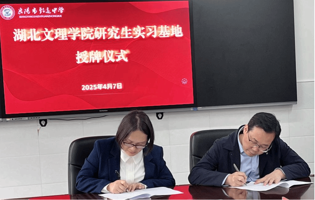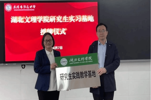 向襄阳市致远中学授予了“研究生实践教学基地”牌匾,陈琰和丁凌代表双方签订研究生实践教学基地合作协议。