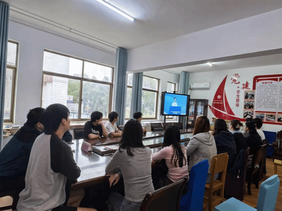于15栋二楼“党建+”学生驿站,组织23级、24级研究生集中观看,2025年湖北省科学道德和学风建设宣讲教育报告会线上直播,另有部分教师通过个人方式自行观看。