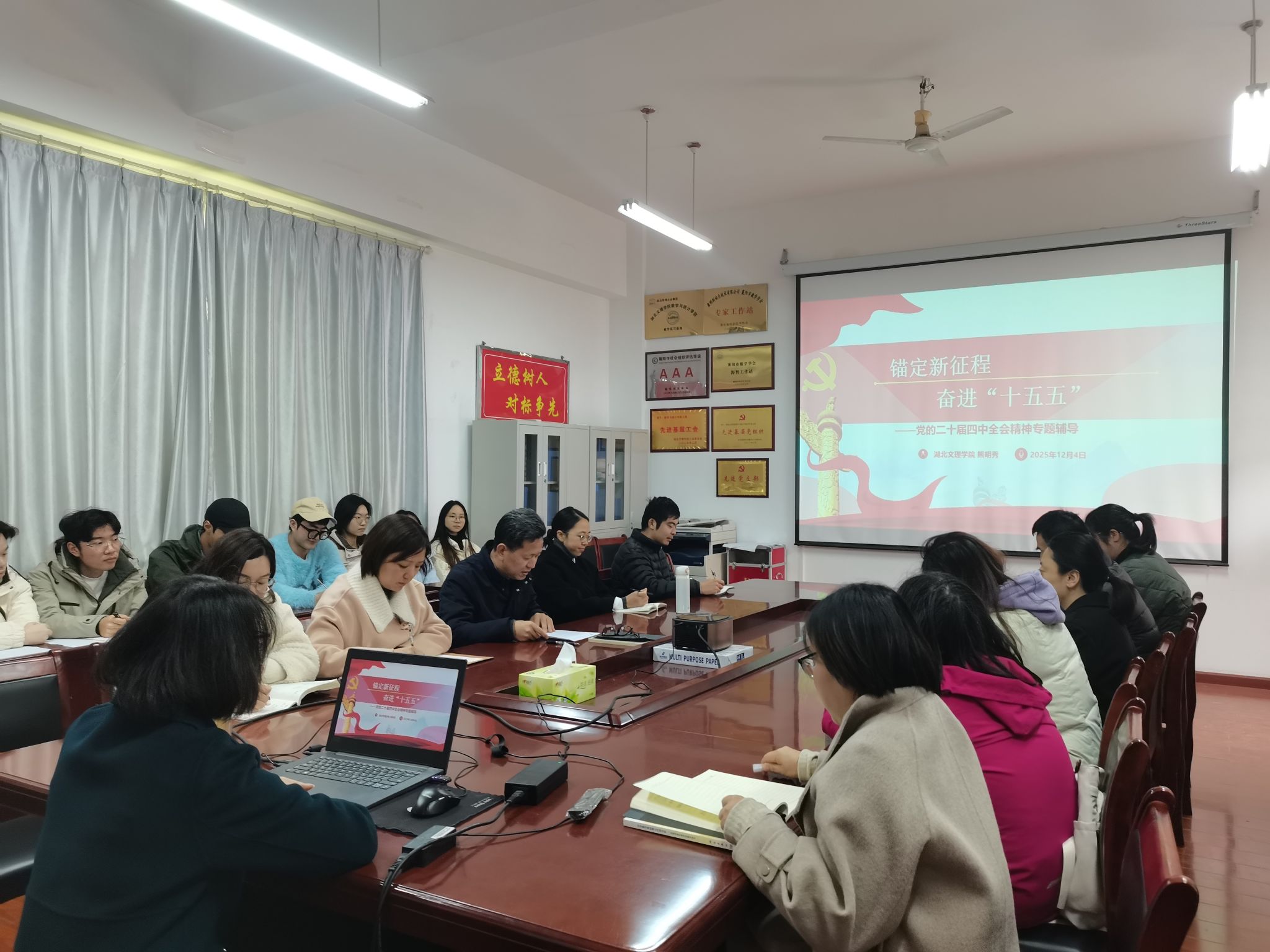学习贯彻党的二十届四中全会精神宣讲团成员、马克思主义学院教授熊明秀作题为《锚定新征程 奋进“十五五”》专题辅导报告。学院领导班子成员、教职工、学生党员、入党积极分子代表参加,宣讲会由学院党委书记袁红星主持。