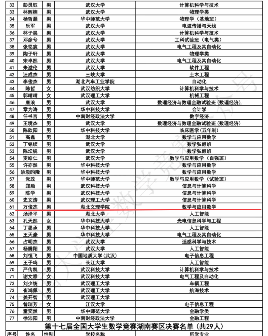 (数统学院 通讯员 肖氏武)第十七届全国大学生数学竞赛决赛名单揭晓, 探花av