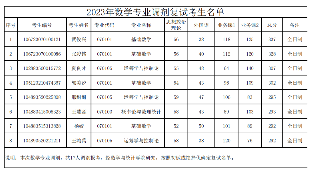 2023年数学专业调剂复试考生名单