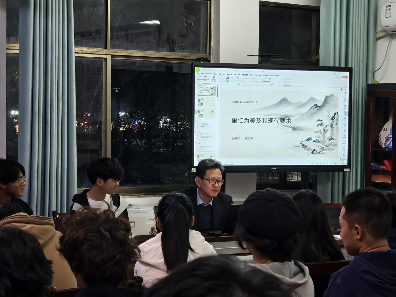 党委书记袁红星以《里仁为美及其现代要求》为题,与师生进行探讨交流,领悟“仁”的深刻内涵与现实意义,传承“仁”的思想精髓。