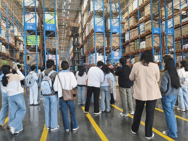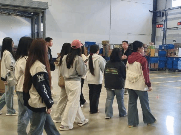 活动中,同学们沉浸式感受零售全产业链运作。在物流配送中心,同学们参观了智能化配送区,近距离接触无纸化作业与自动化分拣系统,随后深入冷藏仓储区及生鲜加工车间,观摩食材恒温储存、精细化加工与标准化包装全流程,明晰零售后端供应链运作逻辑。宣讲环节,企业负责人结合学院专业特色,解读数据分析、供应链管理等岗位需求与职业路径。宣讲结束后,师生前往万达新零售旗舰店,体验智慧零售智能化设施与运营模式。