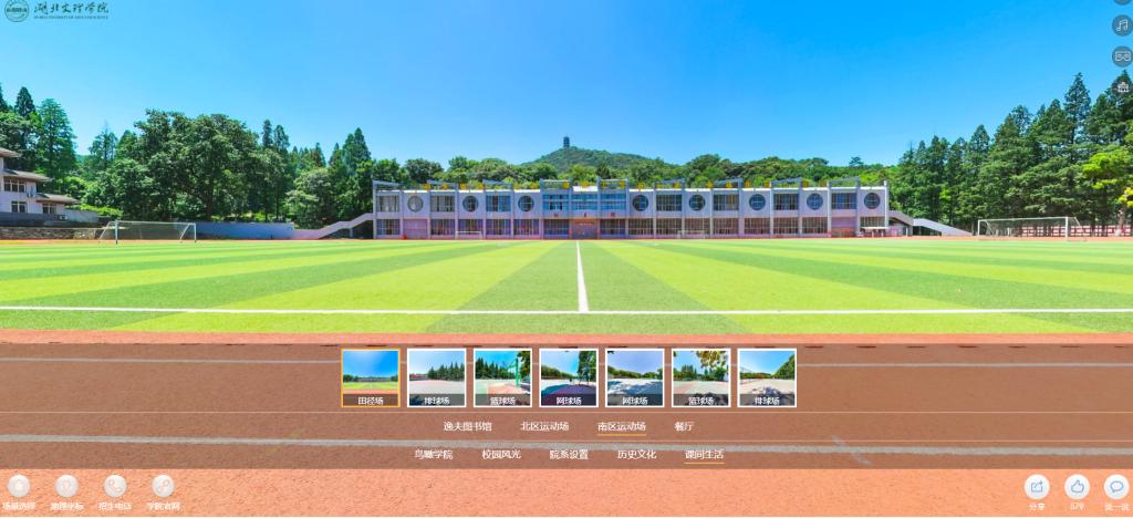 南、北校区,包括教学楼、图书馆、运动场、实验室、学生公寓、餐厅等更多场景,园林式绿化的校园静谧芬芳,各具特色的院系展示尽显风采,丰富的历史文化景观让人流连,青葱时光,熟悉的季节,搭配流行的背景音乐,为大家提供一种更便捷、更持久、更直观、更惬意的参观方式,带来真实的交互体验,尽显湖文学子“淡泊明志,宁静致远,躬耕苦读,鞠躬尽瘁”得天独厚的校园学习生活环境。