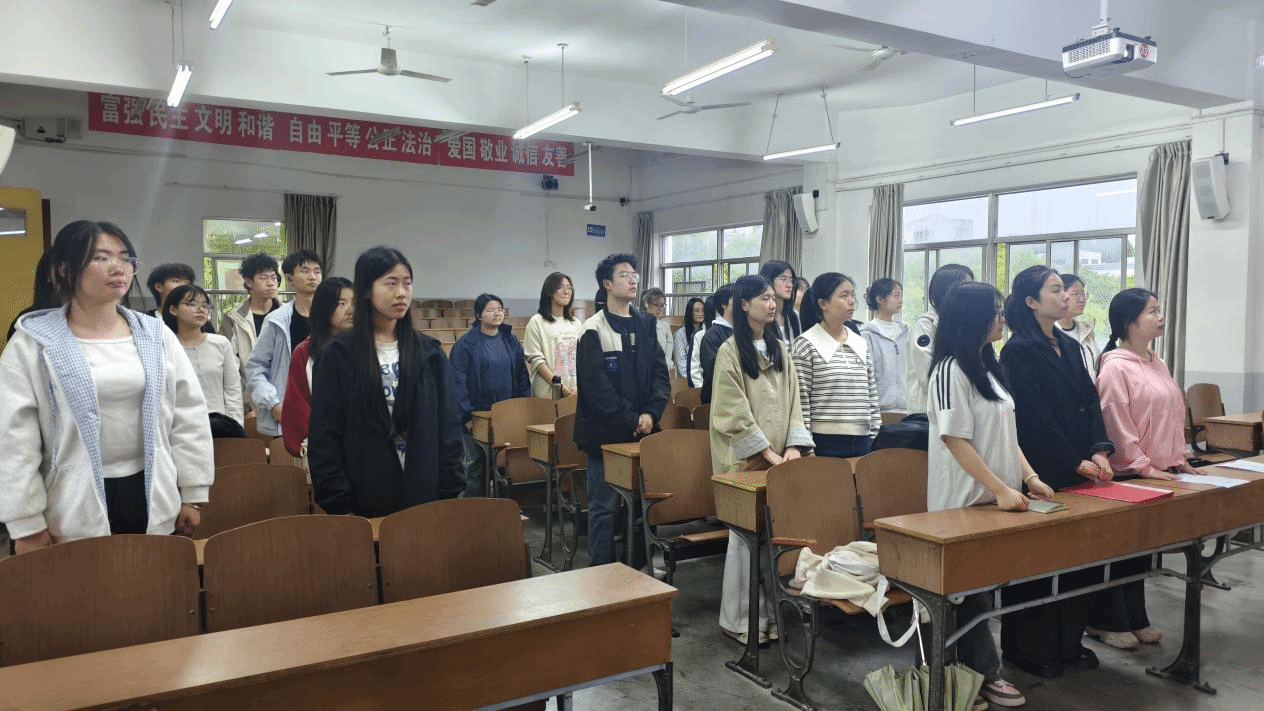 仪式在庄严雄壮的《中华人民共和国国歌》声中正式拉开帷幕。全体师生肃立起立,齐声高唱,激昂的旋律回荡在会场,浓厚的爱国情怀与神圣的使命感在每个人心中升腾。