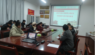 (数与统计学院 通讯员 王华丽)为加强科研诚信建设,优化科研诚信环境,弘扬科学家精神,进一步规范我院研究生学术行为,2024年12月4日,数学与统计学院在学院会议室开展研究生科研诚信与学术规范教育活动。学院院长丁凌、副院长张敏捷、唐波、全体硕士生导师及硕士研究生参加了活动。此次活动由副院长张敏捷主持。