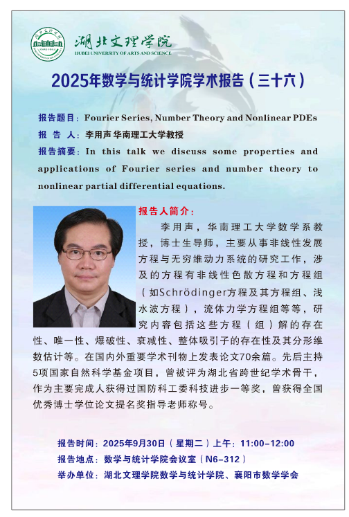 【学术报告】2025年非线性泛函分析及其应用学术研...