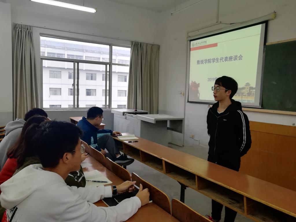 北区六栋302召开以“不忘初心,牢记使命”为主题的学生代表座谈会,就学生学习和生活等各方面的问题予以征求并解决。数统学院党委副书记姚威,副院长张旻嵩,学工办主任张亿瑞出席本次会议。