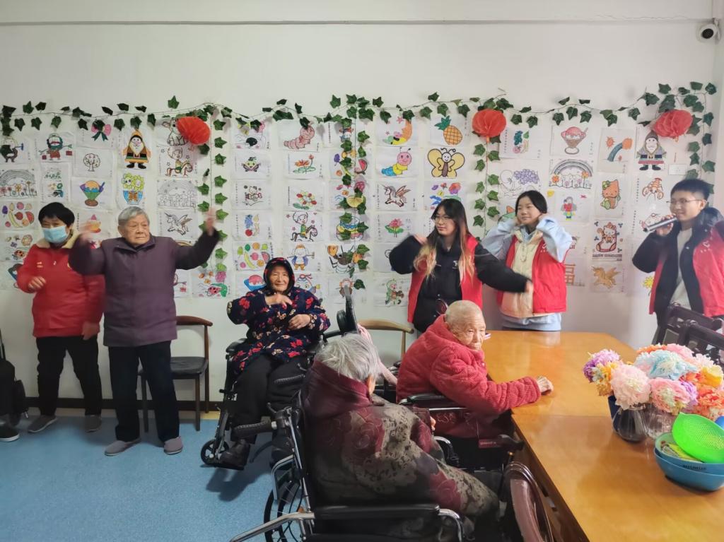 活动现场,志愿者为社区的老人们带来了精彩的文艺表演。同学们通过和老人们一起玩游戏,拉进了心与心之间的距离,欢快的歌声拂去了老人心中的孤寂。随后,同学们来到老人们的住处,为老人们整理房间,打扫卫生,询问老人们的生活和身体状况。