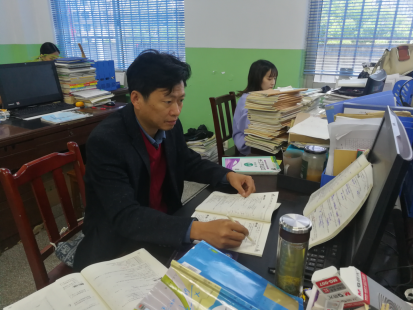 曾庆丰常说,从事教育工作,就是要扎扎实实教书,老老实实育人,只有这样才能赢得学生、家长的尊重与认可。从教初期,他就坚定要把教学工作搞好的信念全身心投入教学,但因为抓不住重点,总是“满堂灌”,学生听得累,效果却不好。他就选了几个老教师,每周听他们三四节课;把老教师的教案拿过来学习,有好的内容就摘抄下来,有一点不明白就去问他们;中午从不休息,批改学生作业,学生考卷从不过夜。对学生、对自己,这种‘时间加汗水’的笨办法,弥补了自己教学经验的不足,虽然成绩不明显,但心里有底了。