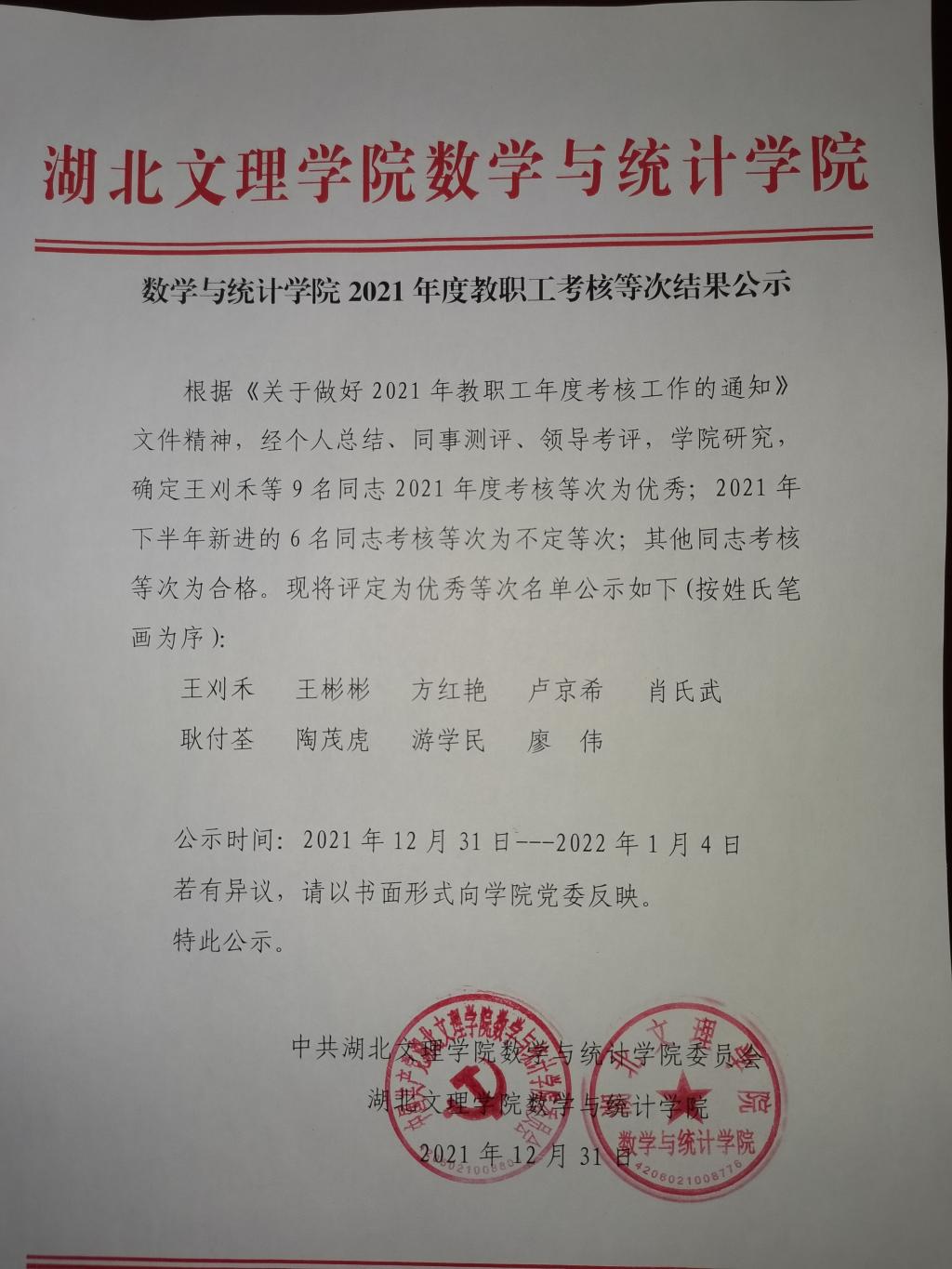 探花av 2021年度教职工考核等次结果公示