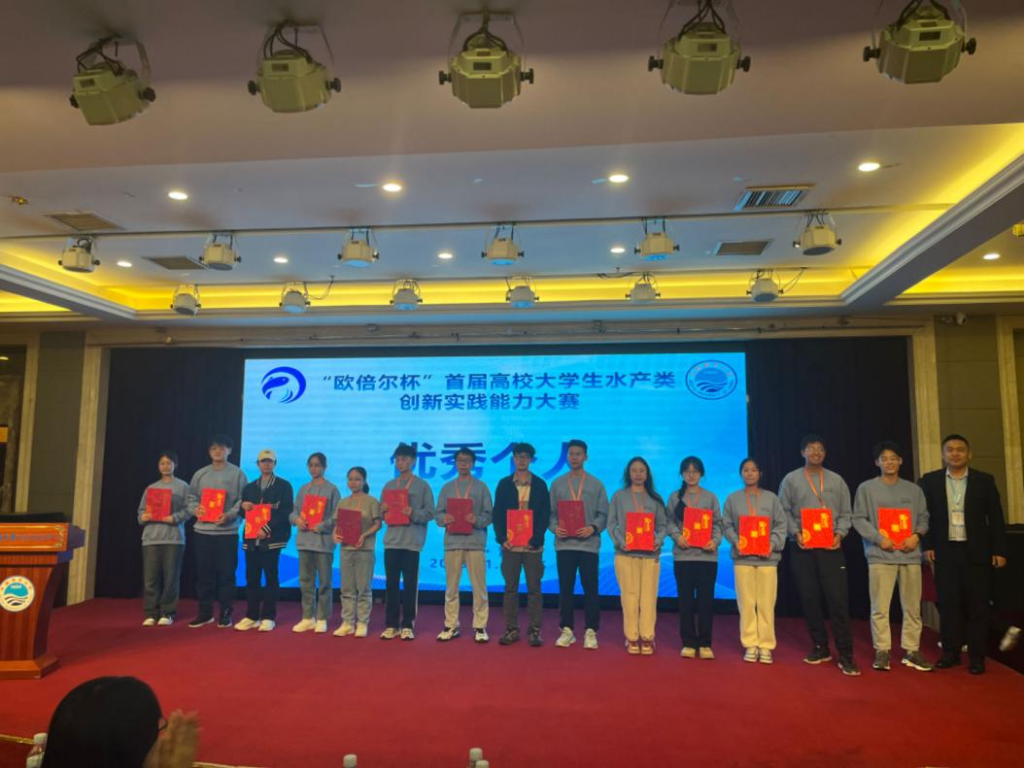 代表队(学生代表:饶依晨、孙一博、徐梦萌)脱颖而出,斩获优秀团队一等奖。本科生学生代表孙一博在水产学实验操作环节获“优秀个人奖”,马荣荣老师在本次大赛中获评“优秀指导老师”称号。本次大赛的参与进一步深化了海洋探花av教育教学改革,促进和提升了复合型水产卓越人才的培养,响应了国家涉农发展的战略。