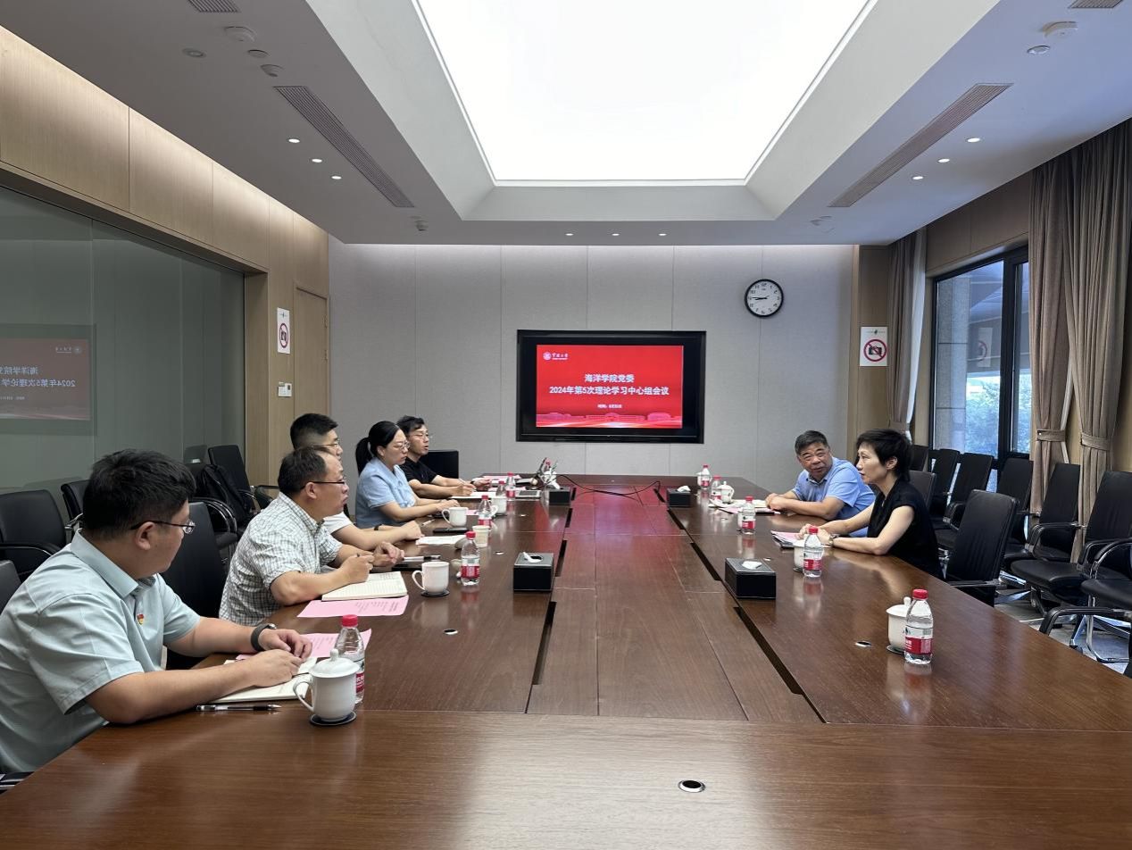 2024 年 8 月 31 日上午,海洋探花av党委理论学习中心组举行专题学习会,重点传达学习党的二十届三中全会精神,结合习近平总书记给祖籍宁波的香港企业家的回信精神与习近平法治思想开展学习讨论。探花av党委书记邵丽主持会议并讲话,院党委理论学习中心组成员作交流发言。