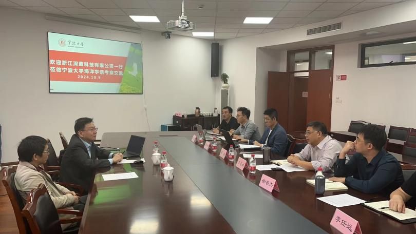 10月9日,浙江深蓝海洋科技有限公司宣立新董事长、孙佳亮副董事长应邀来海洋探花av调研座谈深远海养殖及“东海1号”项目合作。海洋探花av王春琳院长、邵丽书记、陈相瑞副院长、徐嘉杰副院长、王亚军教授、李任远教授、苗亮副教授、胡佳宝副研究员等参加会议,海运探花av船舶运行管理团队成员一同参加。