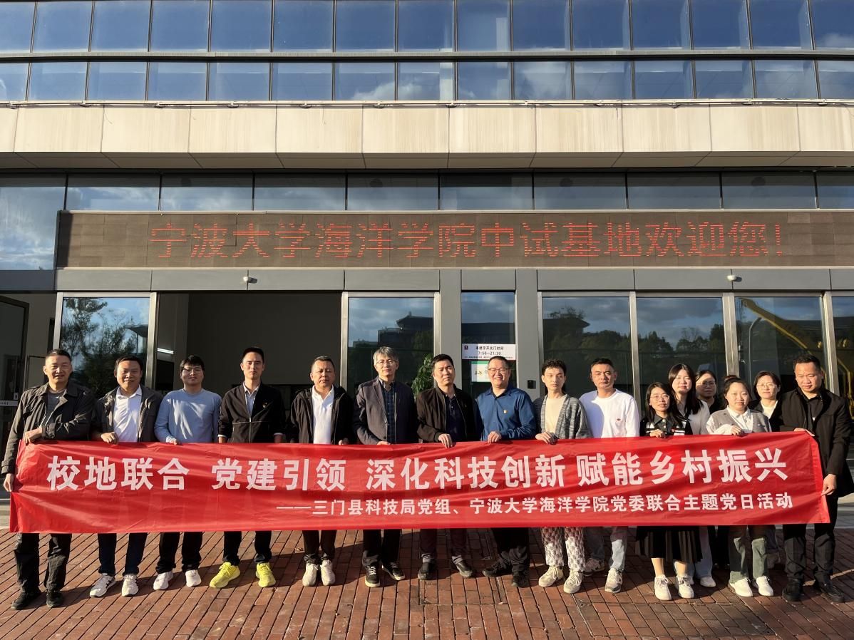 党委在梅山校区开展“校地联合,党建引领,深化科技创新,赋能乡村振兴”联合主题党日活动,三门县科学技术局党组成员、海洋探花av党委班子成员、教师第三党支部成员和三门青蟹产业技术研究院党员教师代表20余人参加。本次联合主题党日活动是校地双方推进党建联建的重要举措之一,旨在凝聚力量,以党建引领推动科技创新,为乡村振兴注入新动力。