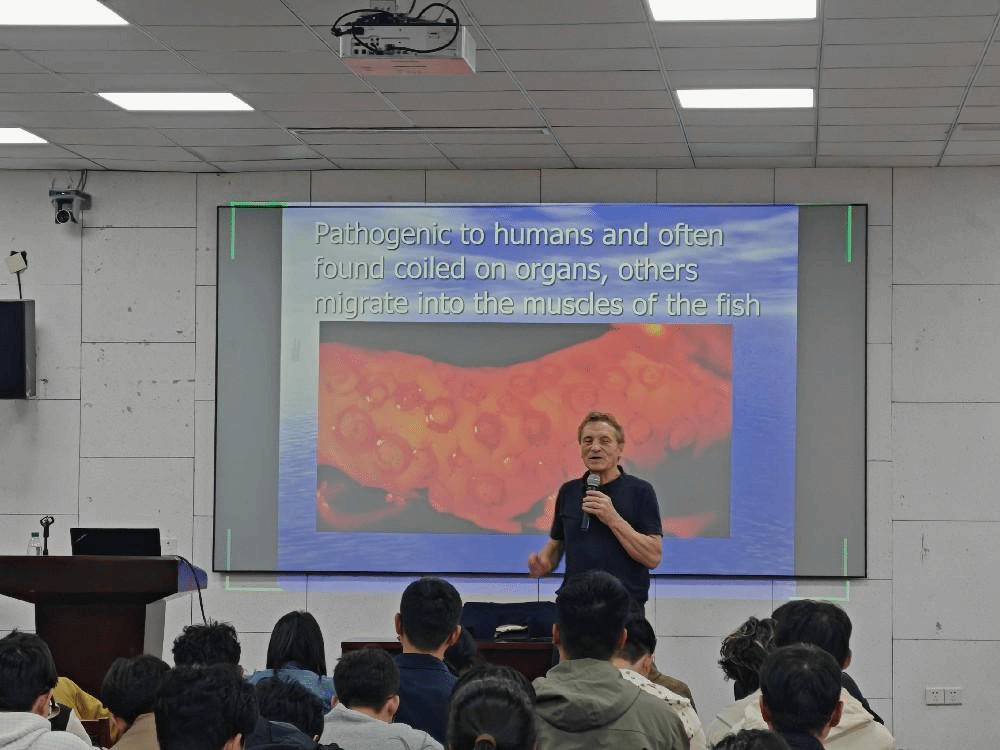 Kurt Buchmann教授由人类疫苗起源为切入口,聚焦于水产疫苗接种,概述了水产疫苗的兴起及发展历程,详细阐述了水产疫苗接种的重要性,强调其在预防鱼类疾病、提高水产养殖产量和质量方面的关键作用。同时,介绍了常见水产疫苗类型和优缺点,通过案例和图片讲述了水产疫苗制作及应用过程。此外,他还结合他所从事的寄生虫研究工作和具体案例,对可能引起人畜共患病的鱼类寄生虫类群进行简要介绍,强调鱼类寄生虫感染对社会和经济造成的危害性,让大家深刻认识到人畜共患鱼类寄生虫问题的严重性。教授还提出了一系列预防和控制人畜共患鱼类寄生虫的措施,为保障人类健康和水产养殖的可持续发展提供了思路。