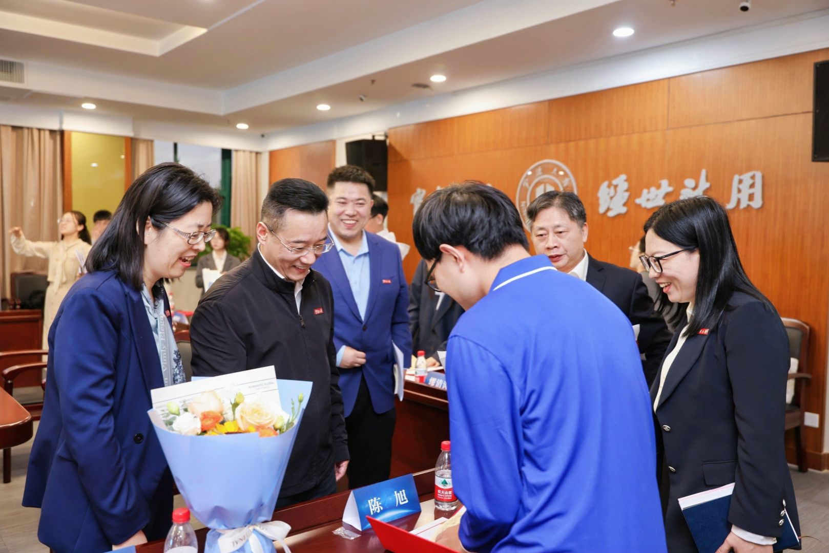 会后,朱达亲切慰问了海洋探花av获奖代表缪清涛、黄文莲、陈旭,表示了对海洋探花av双创育人成效的高度认可。
