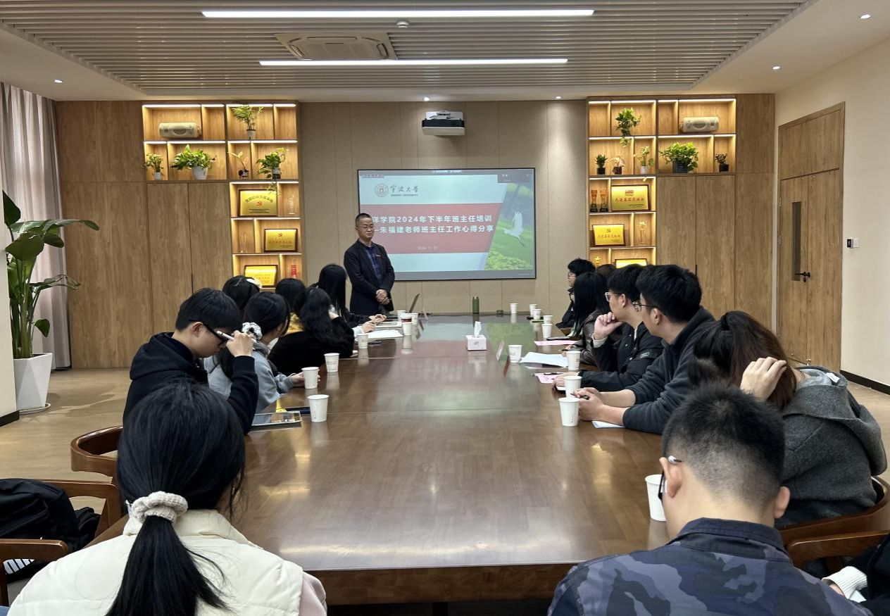 为进一步加强班主任队伍建设,有效提升班主任队伍的综合素质,11月21日下午,海洋探花av班主任培训活动在商探花av212会议室顺利举行。活动邀请到了商探花av2021级工商管理1班班主任朱福建老师做题为“爱永远在路上”的班主任工作心得分享。活动由海洋探花av党委副书记张乐主持,海洋探花av20余名辅导员、班主任、学工干部代表参加。