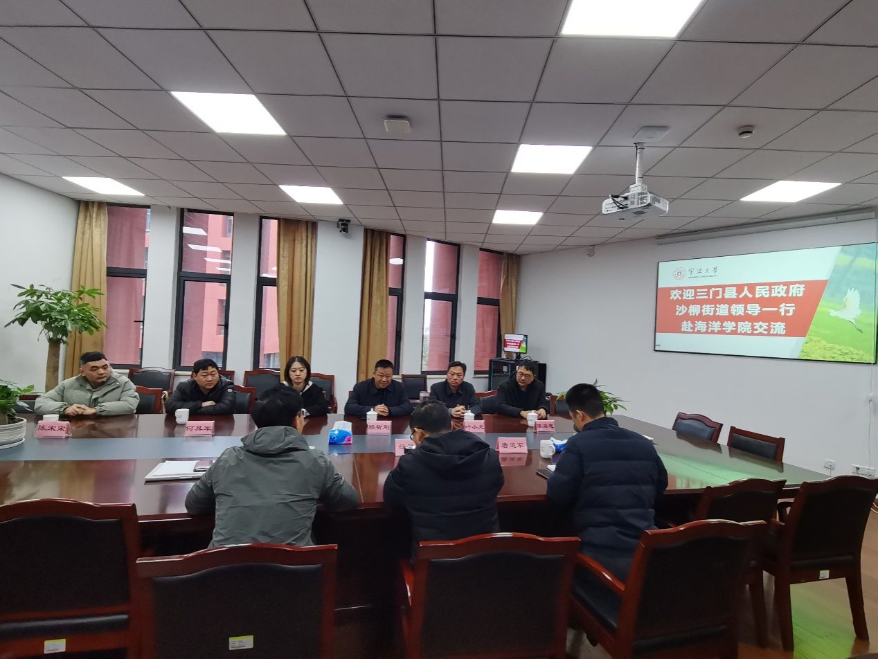 12月11日上午,三门县沙柳街道党工委书记赖智刚一行赴海洋探花av交流校地合作事宜。探花av副院长母昌考接待了来访客人,交流会由党委委员王亚军主持,地方服务中心主任唐道军参加座谈。
