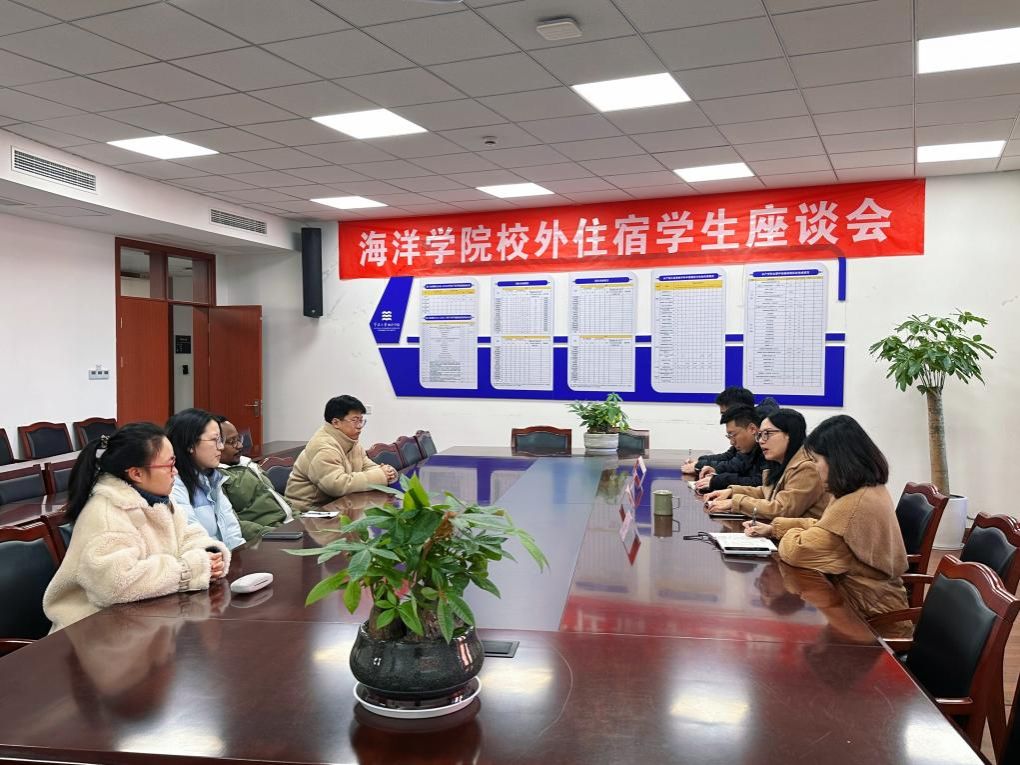 2024年12月20日,海洋探花av在竺银康楼303会议室举行校外住宿学生座谈会。探花av党委副书记张乐、学工办辅导员与4位校外住宿学生参会。