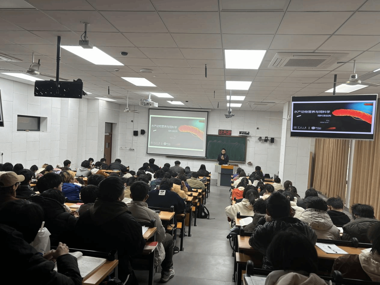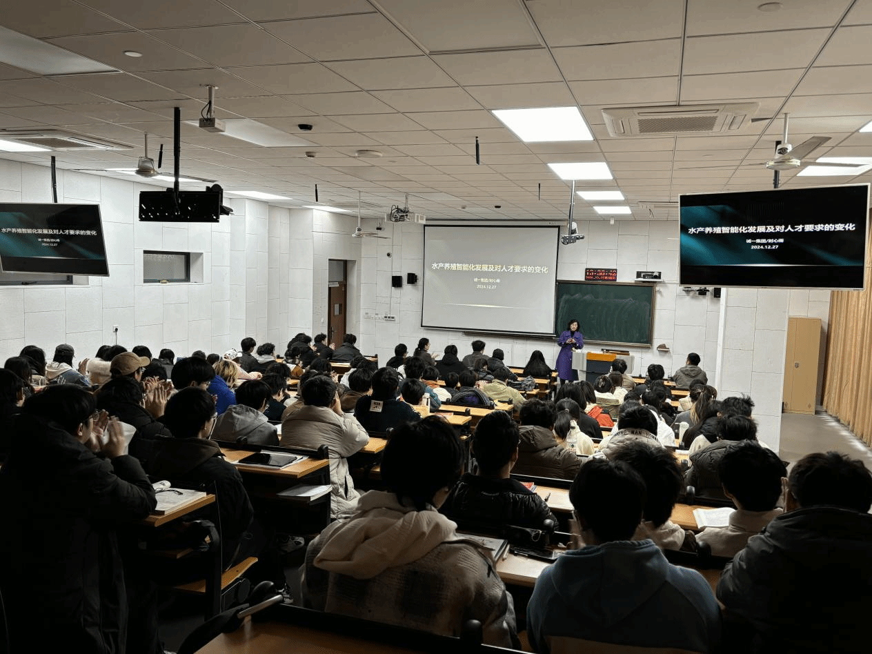 下午,时心雨女士和李弋先生应《水产动物营养与饲料学》课程负责人金敏教授的邀请并在海洋探花av副院长陈相瑞教授的主持下,为2023水产(拔尖人才创新班)、2023水产养殖1班和2班,共100余名学生授课。该课程为省级线下一流课程和校级校企共建课程。本次课程包括两部分内容:首先,由时心雨总经理讲授《水产养殖智能化发展及对人才要求的变化》。她从中国水产养殖的现状与挑战、规模化养殖的实践经验、诚一公司的智能化养殖解决方案、以及智能化发展对人才需求的变化等方面进行了详细讲解。她强调了智能化技术在水产养殖中的重要性,尤其是在提升生产效率和解决环境问题方面的潜力。随后,李弋经理分享了关于饲料添加剂的相关知识,重点讲解了饲料添加剂的定义、使用方法及其重要性。通过具体实例,李经理深入分析了饲料添加剂在水产养殖中的作用及其对动物健康和养殖效益的影响。两位专家结合自身经验和实际案例,为学生们详细讲解了水产动物营养与饲料学的核心内容,将理论与实践有效结合。这不仅激发了学生们的学习兴趣,也增强了他们对专业的认同感,为培养适应市场需求的专业技术人才奠定了良好的基础。