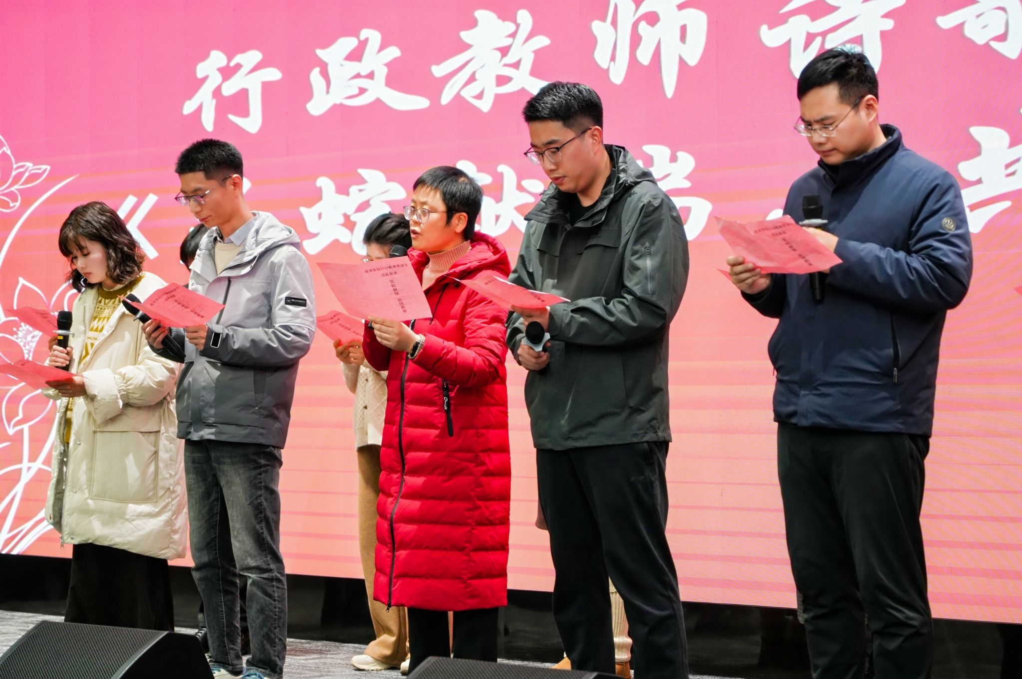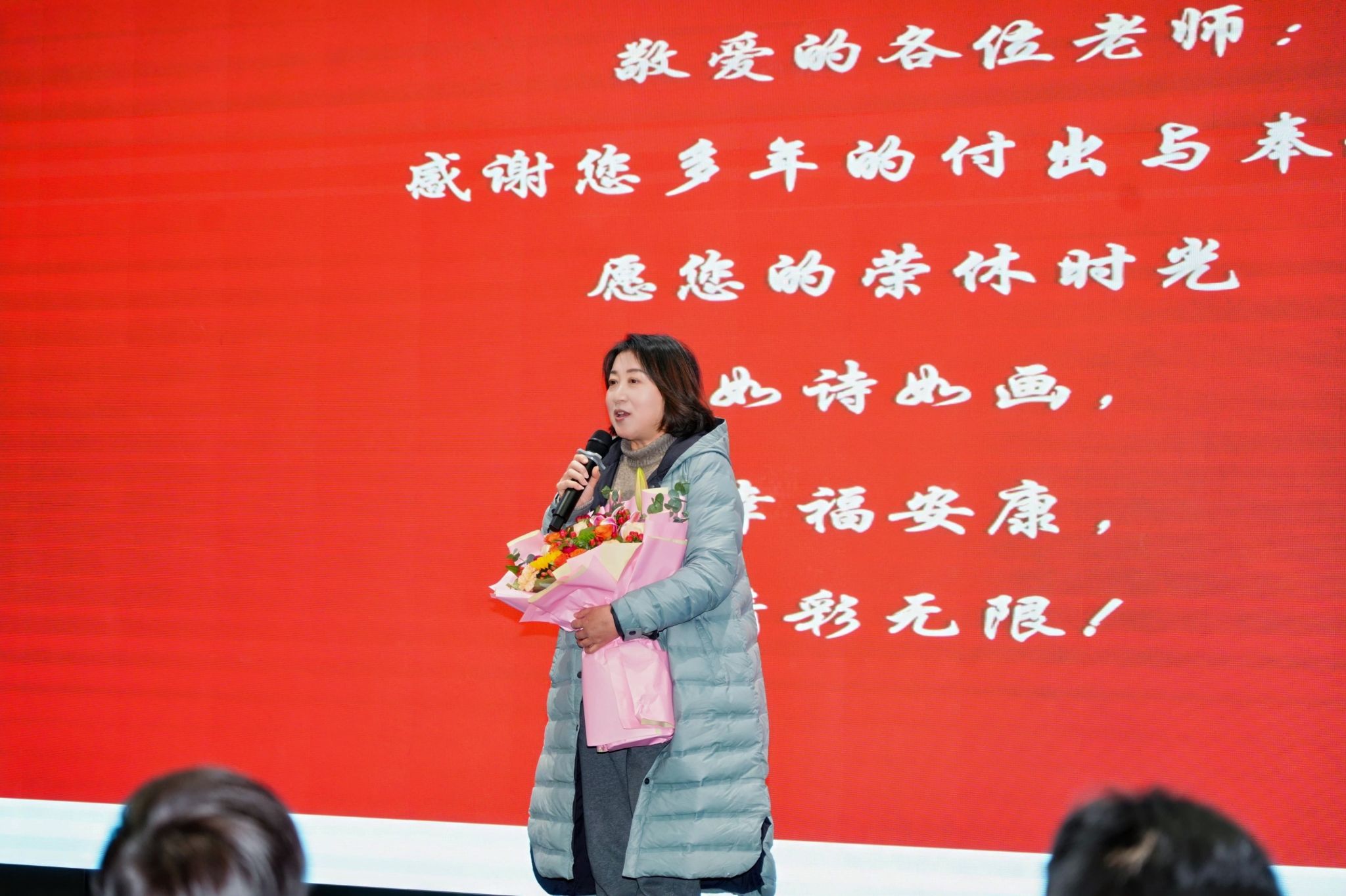 暖心的荣休仪式后,大屏幕响起了外出进修的教师们带来的新年祝福,并正式拉开了欢乐的序幕。