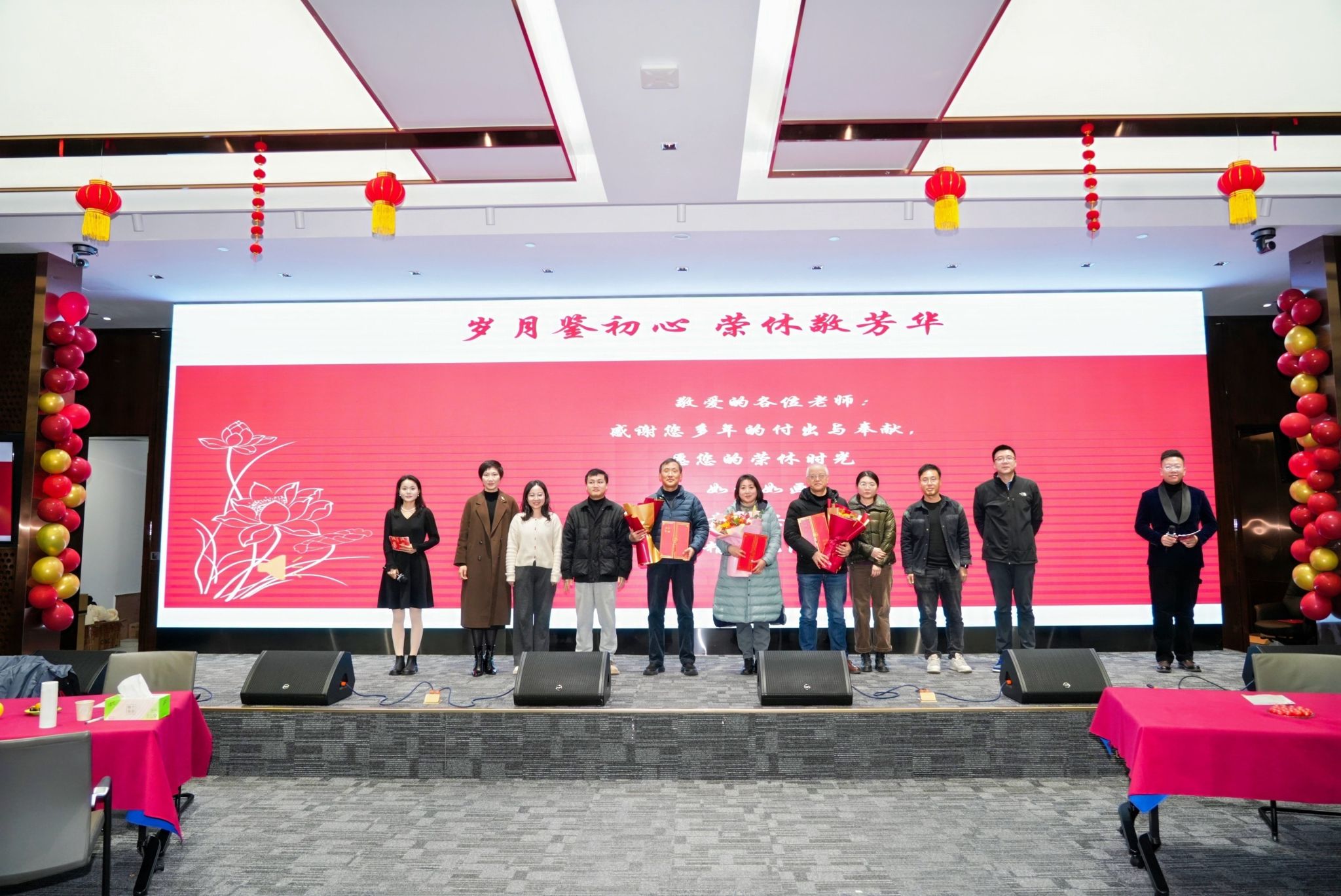 活动中,探花av为今年退休的教师安排了一场温馨的荣休仪式,探花av领导和青年教师代表为退休老师颁发荣休证书并献上鲜花,送上诚挚敬意与美好祝福,感谢他们多年来在各自岗位上默默耕耘、辛勤付出,毫无保留地奉献着自己的智慧与力量。退休教师代表王丹丽老师、张德民老师也向在座的老师们分享了自己的难忘经历与宝贵经验,并感谢探花av一直以来的培养与支持,今后也会持续关注和支持探花av的发展。