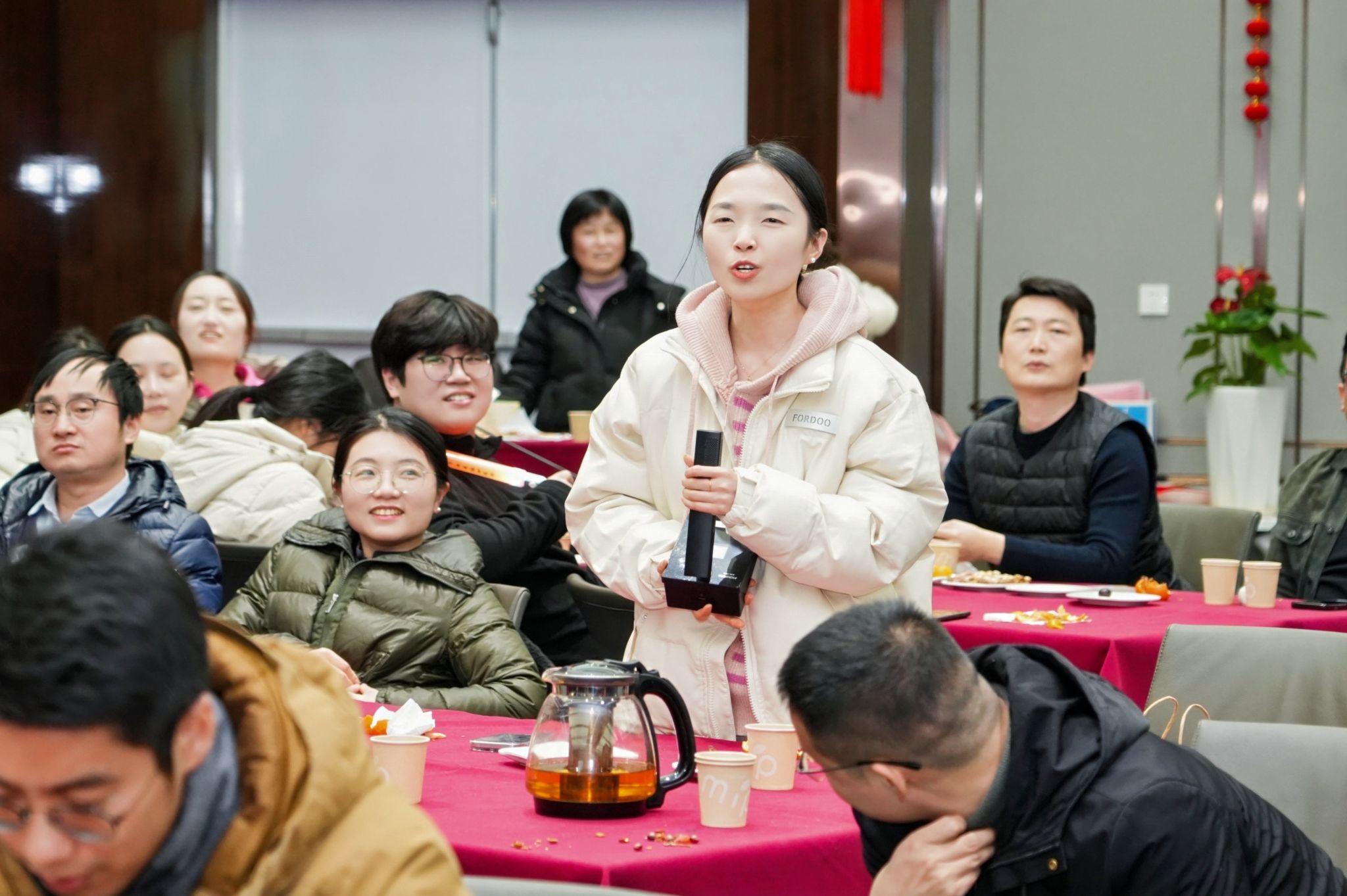 今年的新春联谊会采取了节目、游戏和抽奖互相穿插的形式,现场高潮迭起。