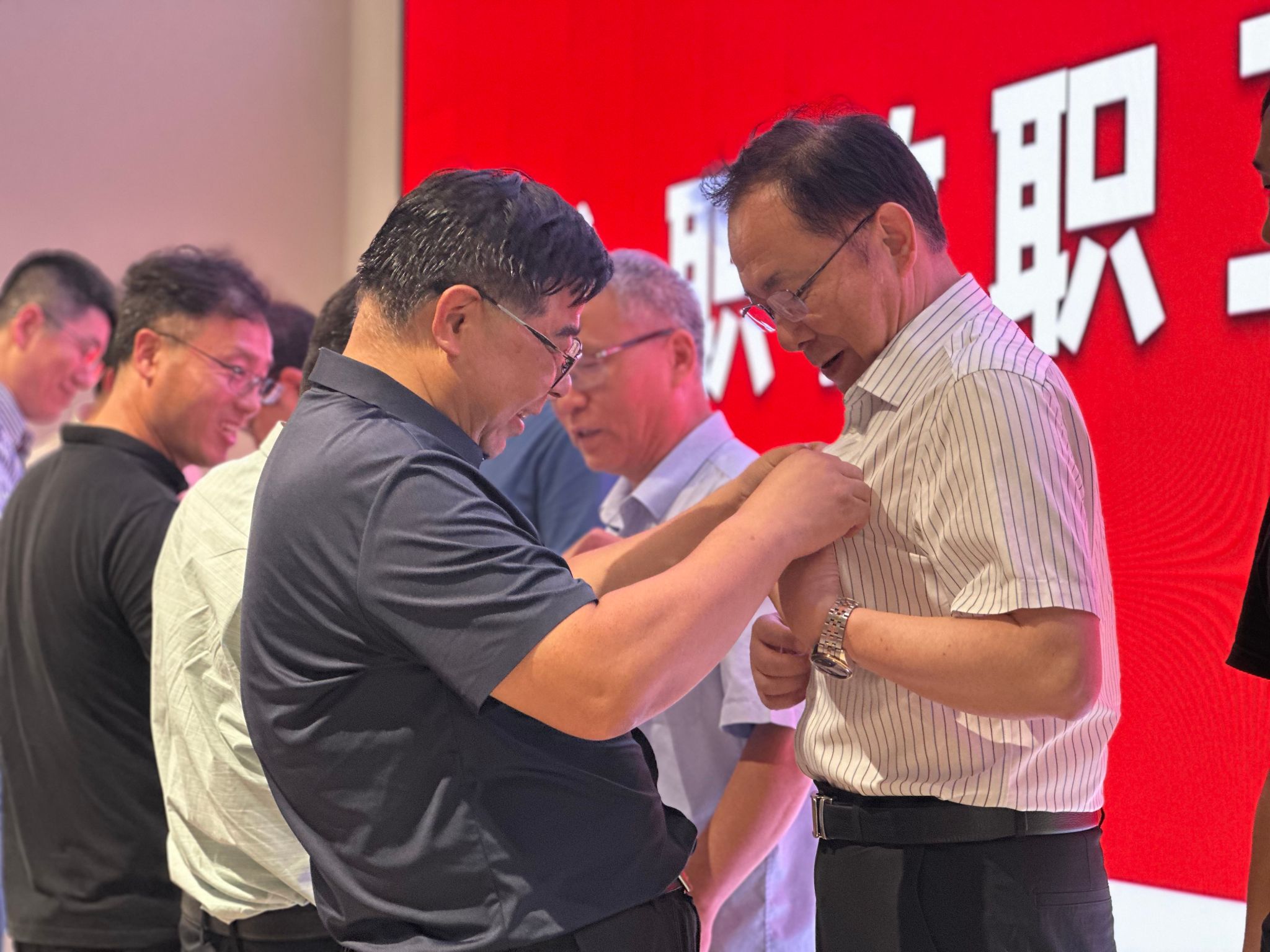 大会伊始隆重举行了新教职工入职仪式。在全场老师的热烈掌声中,八位成果丰硕、德高望重的学术大咖和冲劲十足、未来可期的青年才俊逐一亮相,探花av领导班子成员为他们佩戴探花av