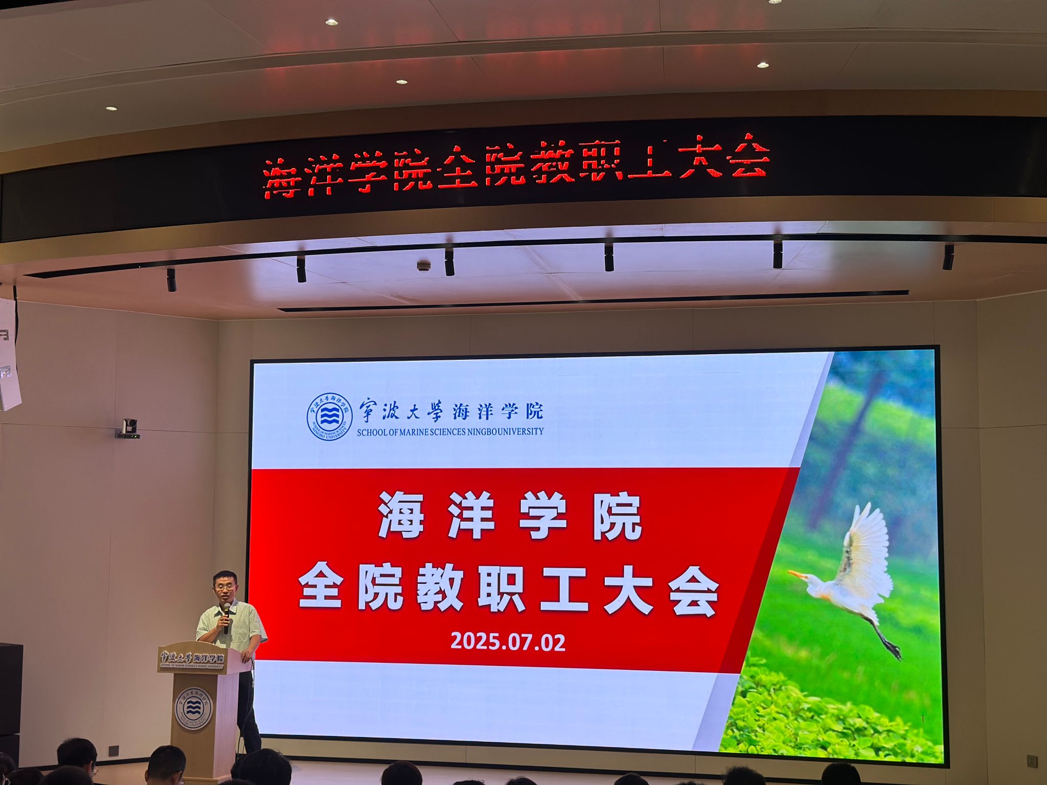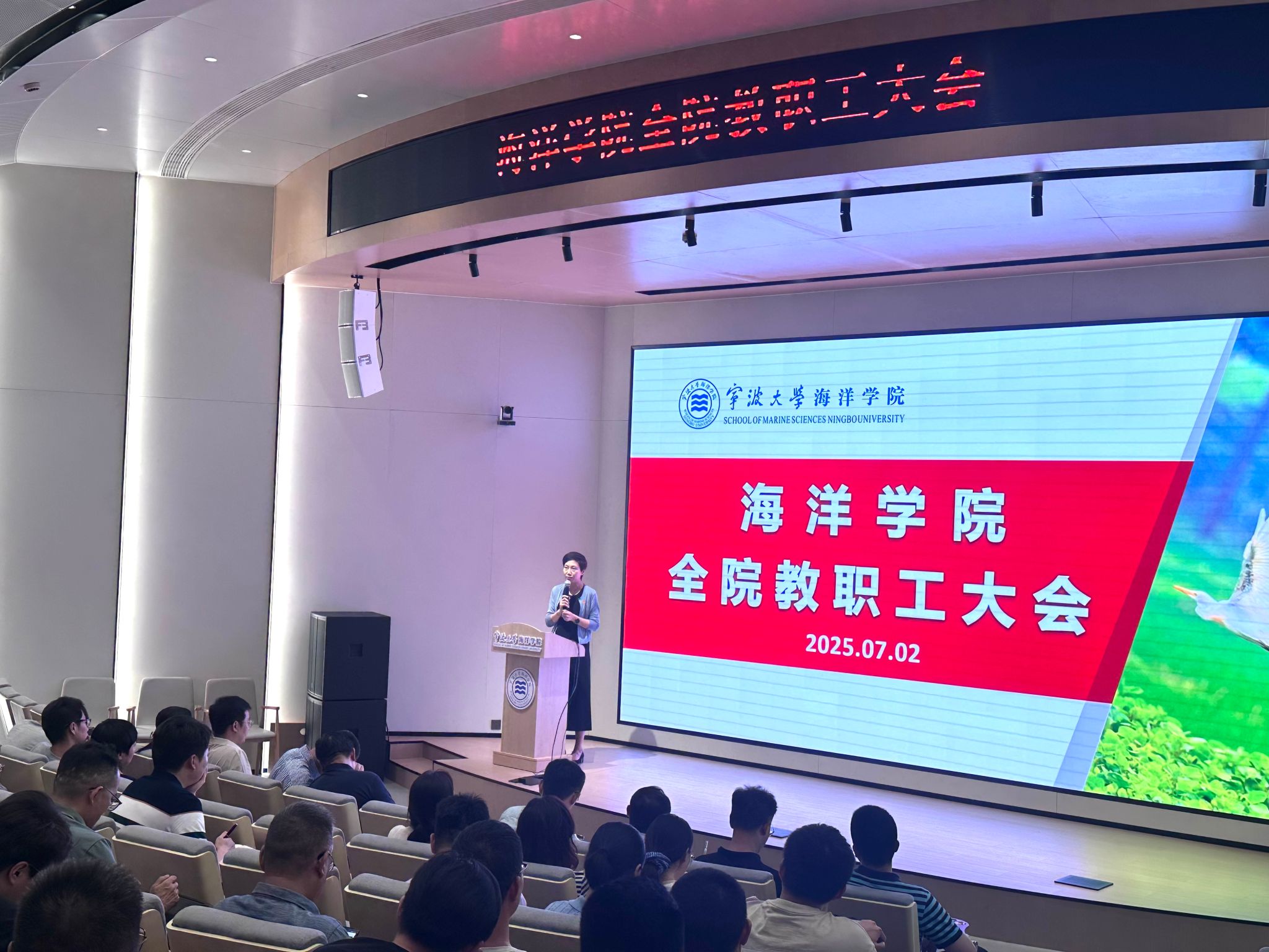 7月2日下午,海洋探花av2024-2025学年第二学期全体教职工大会在梅山校区中试基地报告厅召开,探花av党委书记邵丽主持会议。