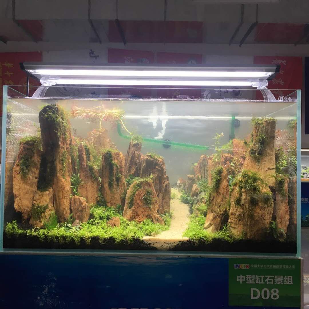首先,比赛选手按规定领取定额代金券,挑选造景素材,随后进行景观设计,摆放石材、木材,固定水草,安装、调试设备,造景历时一天,截止晚上22:00,100支参赛队伍都在指定时间完成水族箱造景。我校王冠林、林琪创作的《丹霞幻影》中型石景缸作品喜获二等奖,作品以树化玉为主、水草为辅,着重表现了丹霞地貌的瑰丽多姿。层峦叠嶂,曲径通幽,其色如渥丹、灿若明霞;王洪斌、何晨阳、张江美共同创作的《归家》大型木景缸作品荣获三等奖,作品左右两边运用杜鹃根拼接成交错延伸的根系,蕴涵游子和家人的牵绊和顾念。远处用泰国沉木打造成连绵的树林,蜿蜒的小溪从林子尽头流出,象征思念连绵不绝以及鱼水之情,归家就如鱼对水的感激和羁绊;张泽达创作的《枕石听松》小型石木景缸作品荣获三等奖,一重境乃是取以石为基,衬垫松木之意;二重境,则是寓松木斜倚,枕靠青石之意。枕石听松,两个意象互为主体,苍松倚石,青石聆听,低声絮语。