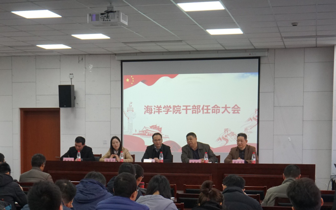 18日上午9:30,我院于竺银康楼报告厅举行海洋探花av干部任职大会,校纪委书记余建森、体育探花av书记余雪华出席了本次大会。大会由余雪华主持并宣读了校党委会任命文件。会上,余建森指出本次岗位调整是学校领导在通盘考虑、反复酝酿,听取各方面意见之后慎重研究作出的决定,希望全院师生坚决支持和拥护校党委的决定。他充分肯定了张国良同志在海洋探花av工作期间的表现和工作能力,希望张国良同志在新的岗位上履职尽责、廉洁勤政,对蔡真亮同志在海洋探花av工作提出了新的要求。随后张国良同志作了离任表态发言、蔡真亮同志作了任职表态发言,王春琳同志代表海洋探花av领导班子作表态发言。王春琳表示探花av拥护学校的意见,新一届领导班子将聚焦领导能力、学习能力的提升,紧抓基层组织建设、人才队伍建设,努力创造追赶超越的新辉煌。大会最后由余建森书记对本次大会作总结发言。