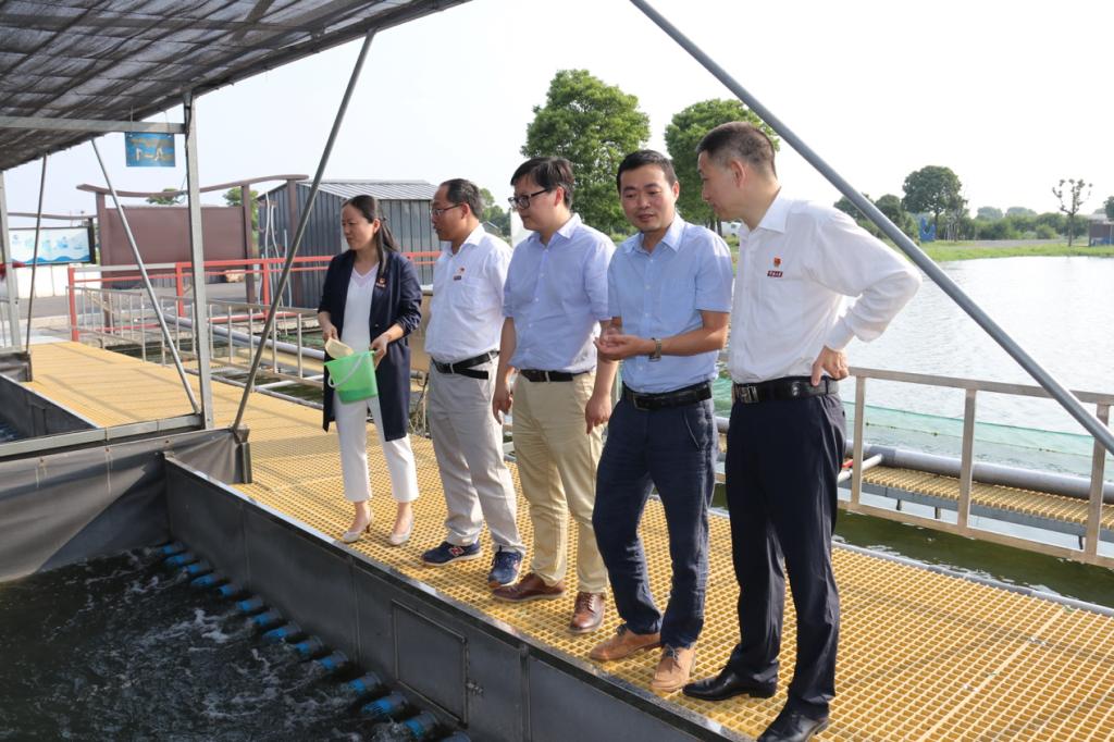 恒泽公司总经理潘明杰带领各位实地考察了池塘循环水养殖系统(鱼跑道)、工厂化循环水养殖系统(鱼工厂)、育苗设施系统等。