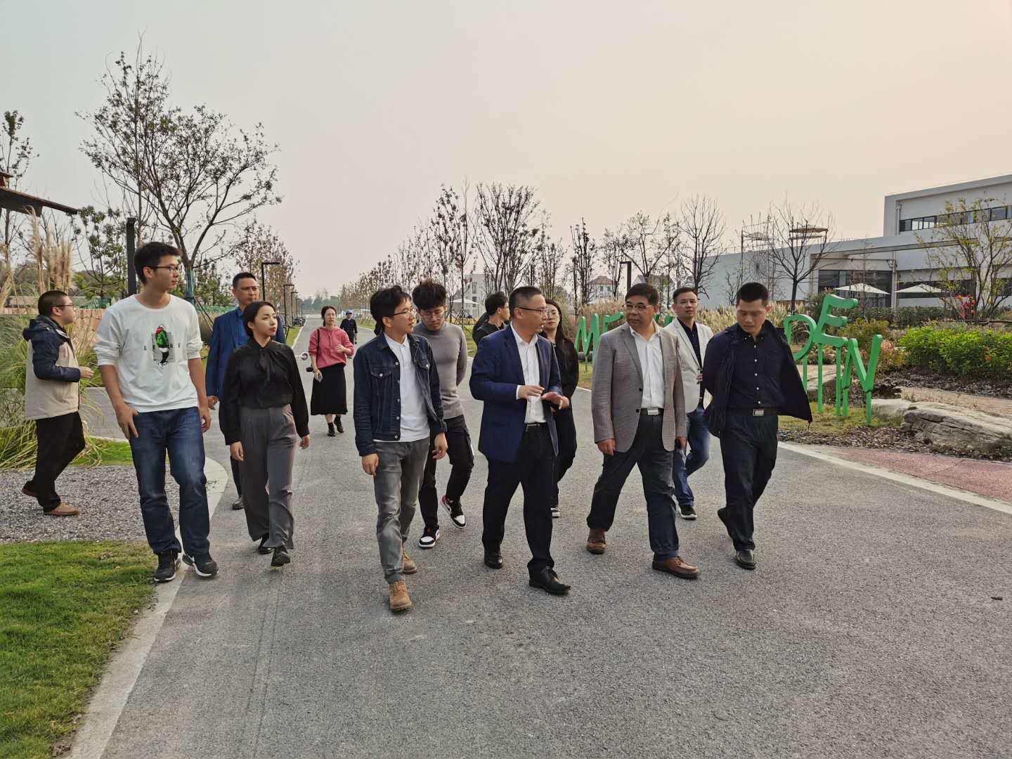一行人先后走访了平湖市林埭镇一代水产养殖项目、广陈镇的农业展示馆、蓝城“春风江南”生态科技农业园、中以设施农业示范园等地,并与当地人员就特色产业进行交流与学习。