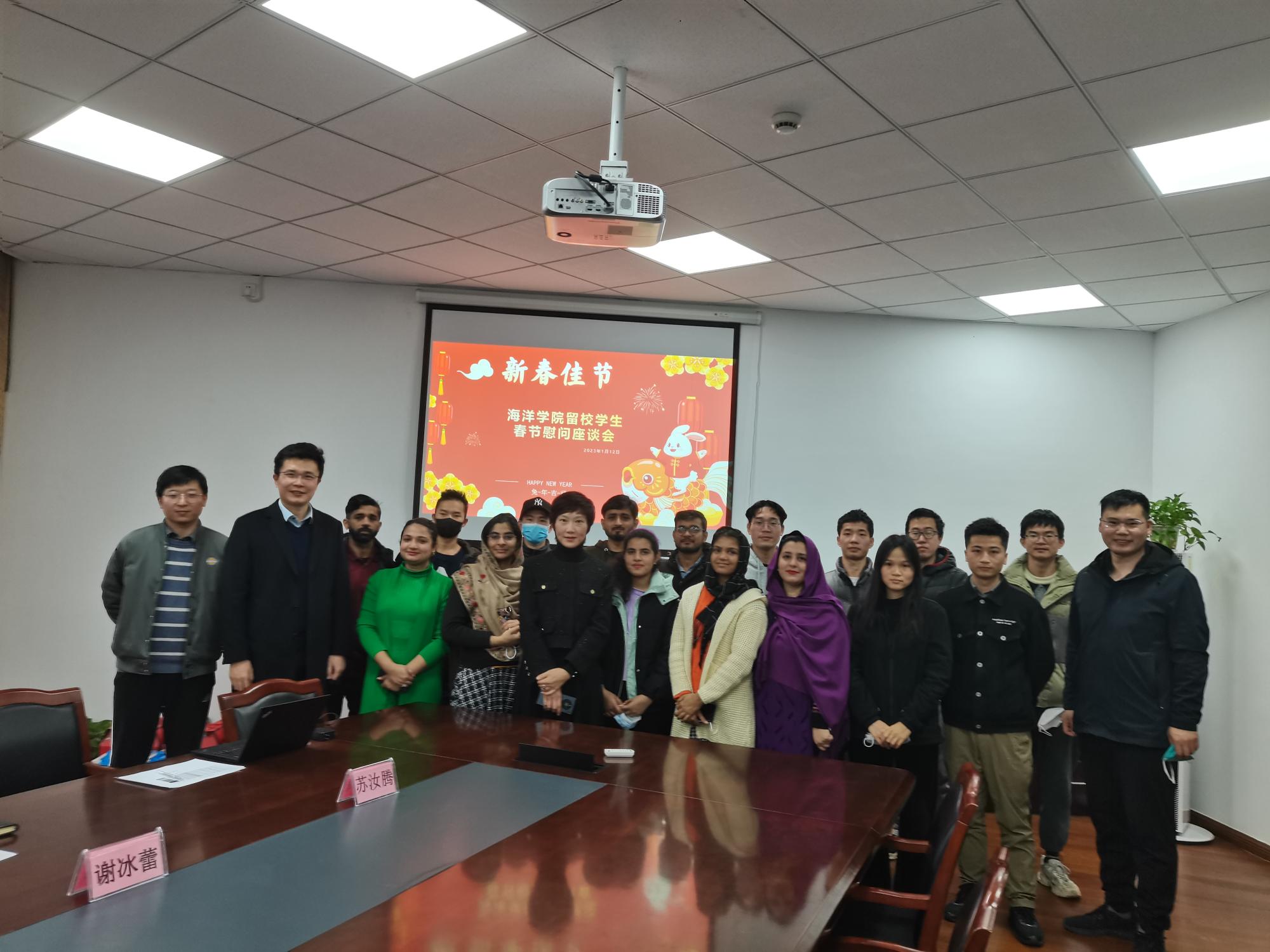 1月10日,海洋探花av举行2023年春节留校学生座谈慰问会。探花av党委书记邵丽、副书记谢冰蕾、辅导员一行在梅山校区参加了慰问活动,为国内外留校学生送上新年礼包和新春祝福,表达探花av的悉心关怀和深深牵挂。
