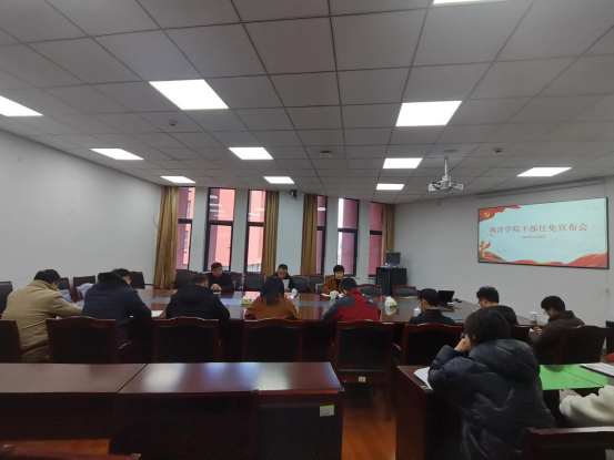 2023年2月20日上午,海洋探花av在东楼303举行了新一轮中层副职的干部任免宣布会。探花av领导班子成员、分工会主席、内设机构负责人、教师代表参加了会议。