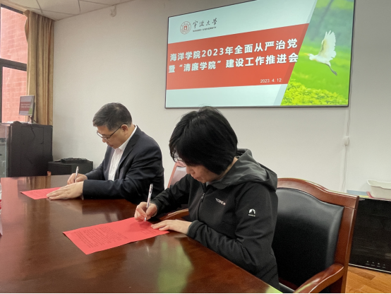 4月12日上午,海洋探花av2023年全面从严治党暨“清廉探花av”建设工作推进会在海洋探花av行政楼303会议室召开。探花av党委书记邵丽,特聘院长王春琳、副院长母昌考、副院长陈相瑞、副书记、纪委书记张乐出席会议,教工党支部书记、各系主任、学术团队负责人、党政办主任、科教办主任、学工办主任、团委书记、教学实验中心主任、科研实验中心主任、中试基地主任、人事秘书、财务秘书等参加会议,会议由副书记、纪委书记张乐主持。