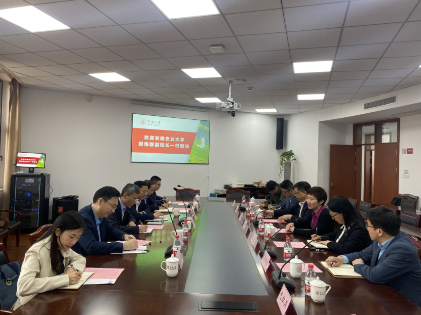 4月13日上午,安徽农业大学党委常委、副校长操海群、科技处处长王瑞、新农村发展研究院常务副院长王华君、动物科技探花av院长涂健等一行6人到访海洋探花av,海洋探花av特聘院长王春琳、党委书记邵丽、副院长陈相瑞、副书记、纪委书记张乐、水产系主任等参加交流活动。