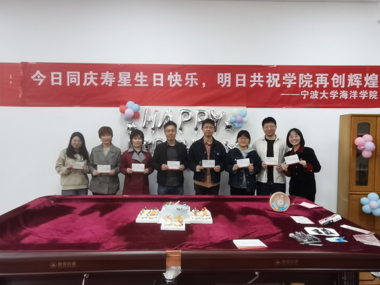 4月27日上午,海洋探花av东楼一楼教工之家装饰得玲珑满目,似有过节气氛,原来是探花av工会安排了一场四月过生日教职工的集体生日会,旨在进一步增强教职工凝聚力、向心力和归属感,营造健康文明、积极向上的工作氛围。生日会由工会福利委员陈晨主持。